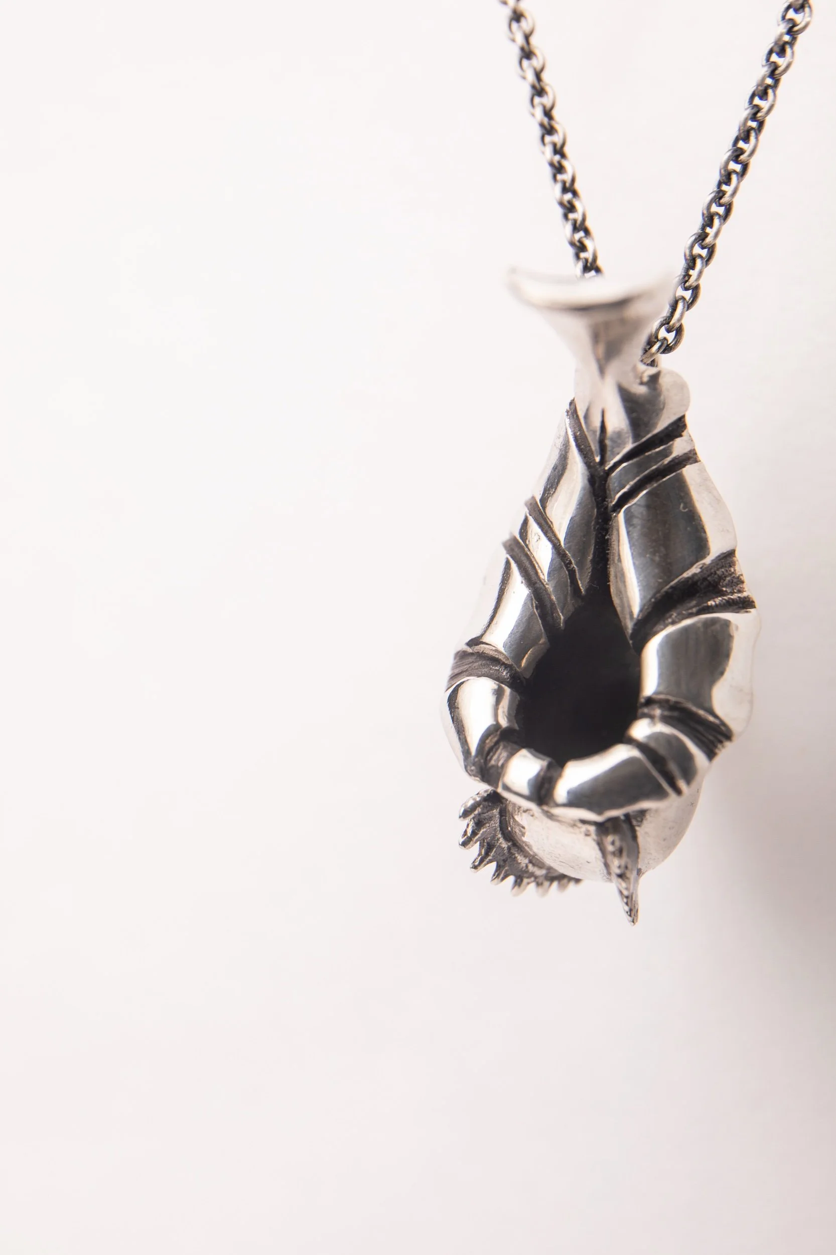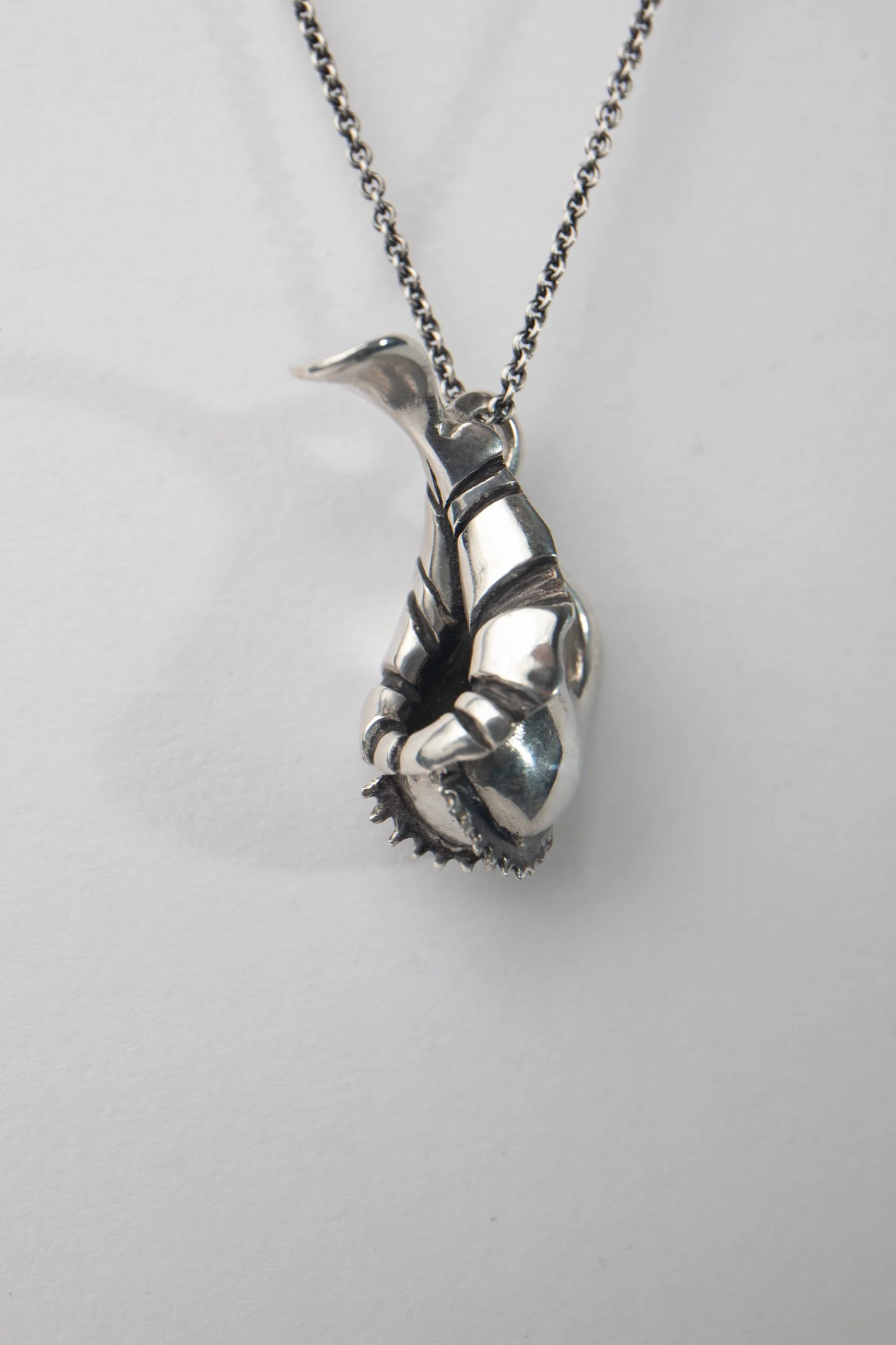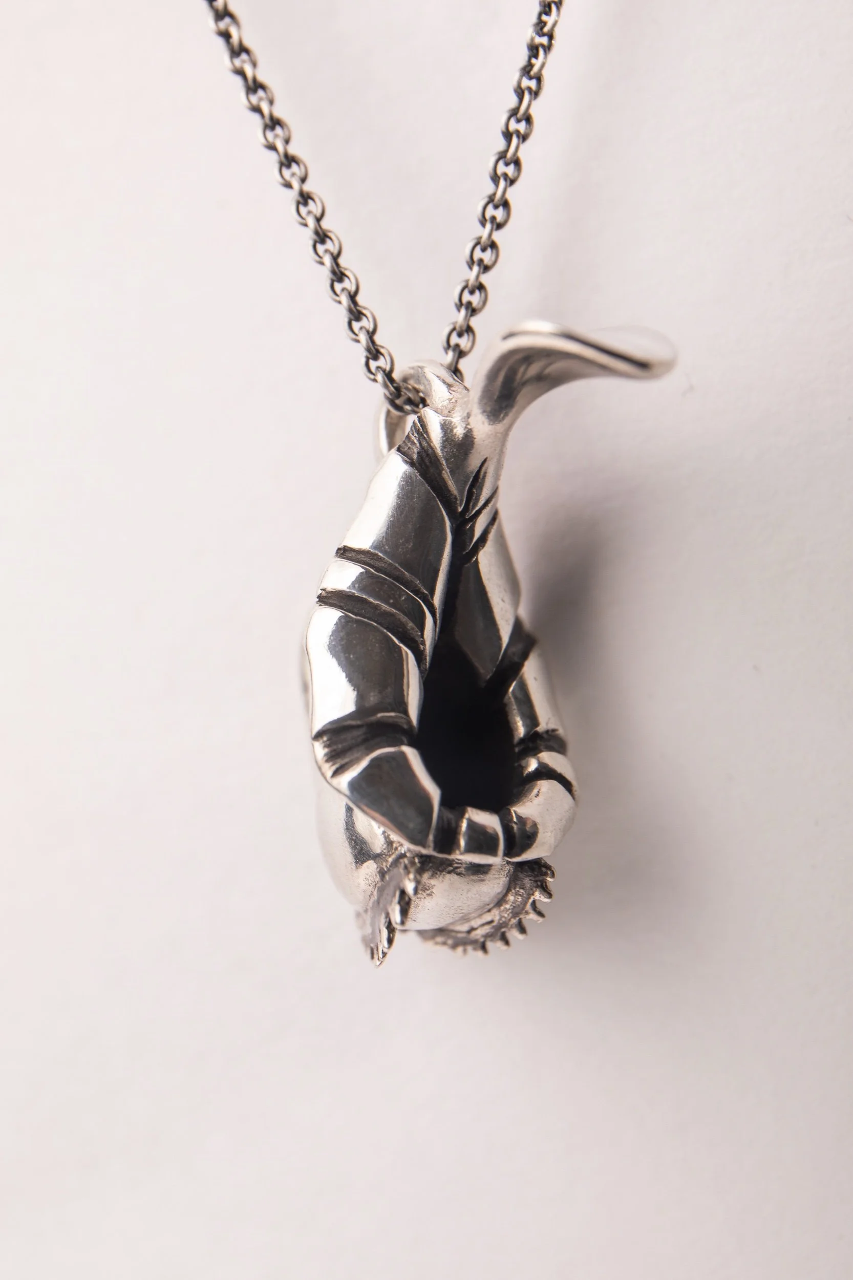 This mini sized pitcher pendant hangs from a 18 inch silver chain.